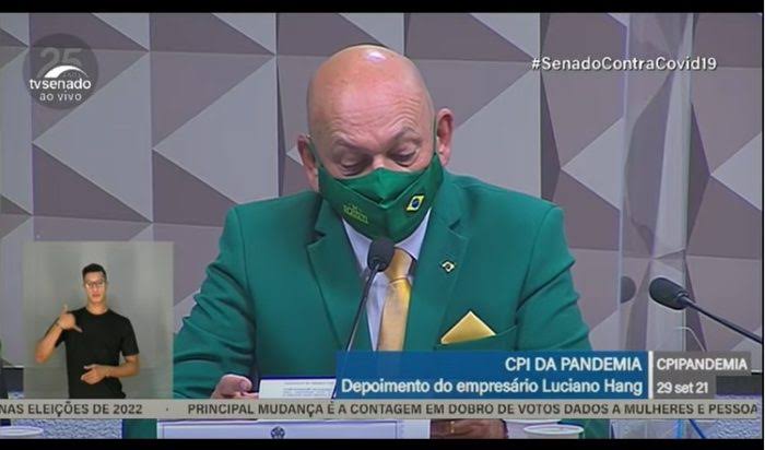 O empresário bolsonarista Luciano Hang negou, hoje, em depoimento à CPI da Covid, ter financiado "esquema de fake news".